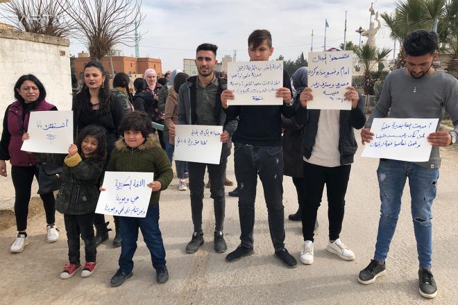 تظاهرة في عامودا تطالب بالإفراج عن مدرسين بعد أيام على توقيفهم