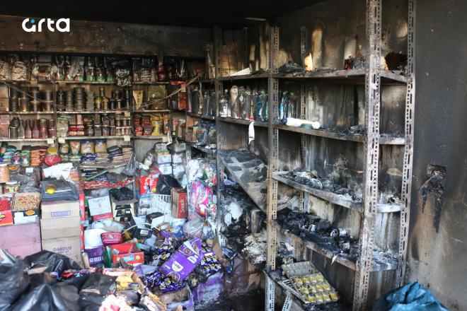 وقال صاحب المحل، جوان علي، لراديو آرتا إن الحريق اندلع قبل الساعة الخامسة فجراً بسبب ماس كهربائي في البراد.
