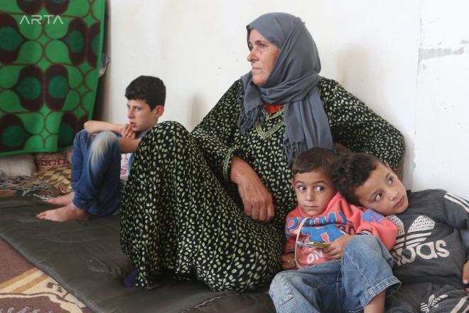 "يطلبون منا مغادرة المدرسة. إلى أين سنذهب؟ لا نستطيع دفع آجار منزل، من أين سنؤمن لقمة العيش؟ لم يبق معنا شيء، ولا نستطيع الخروج من هنا. أحفادي كلهم صغار. منذ ثلاثة أيام نبحث عن منزل للآجار، لكن أسعار الآجار غالية جداً، وتصل إلى حوالي 75 ألف ليرة سورية شهرياً. لا نملك إمكانات لدفع هذا المبلغ...لا أريد شيئاً من أحد، لم أعد أستطيع الكلام".